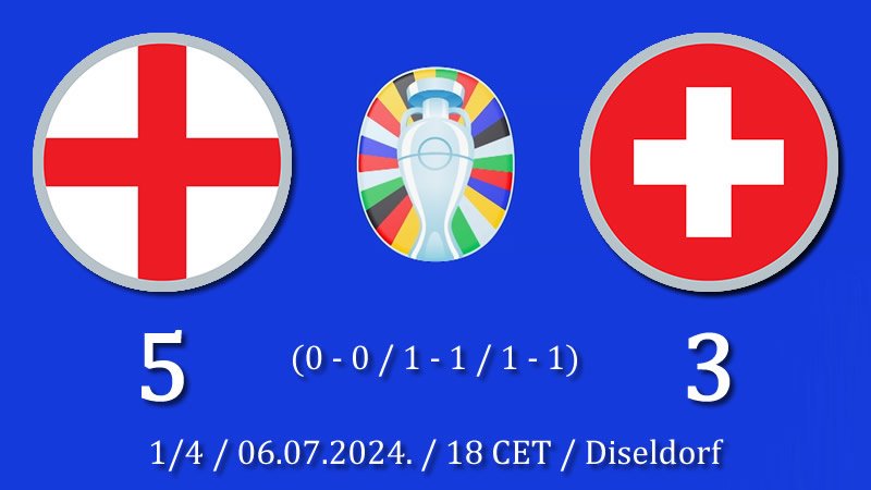 Engleska na penale pobedila Švajcarsku.